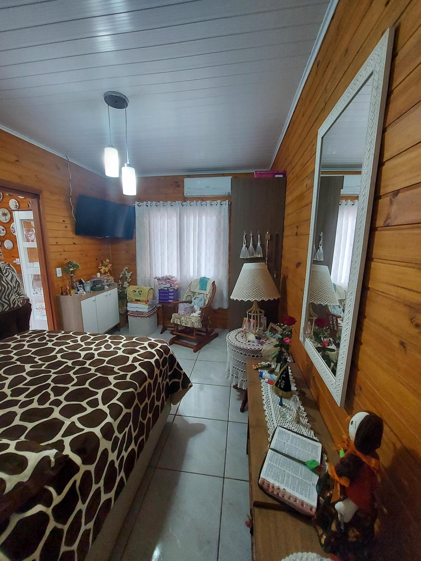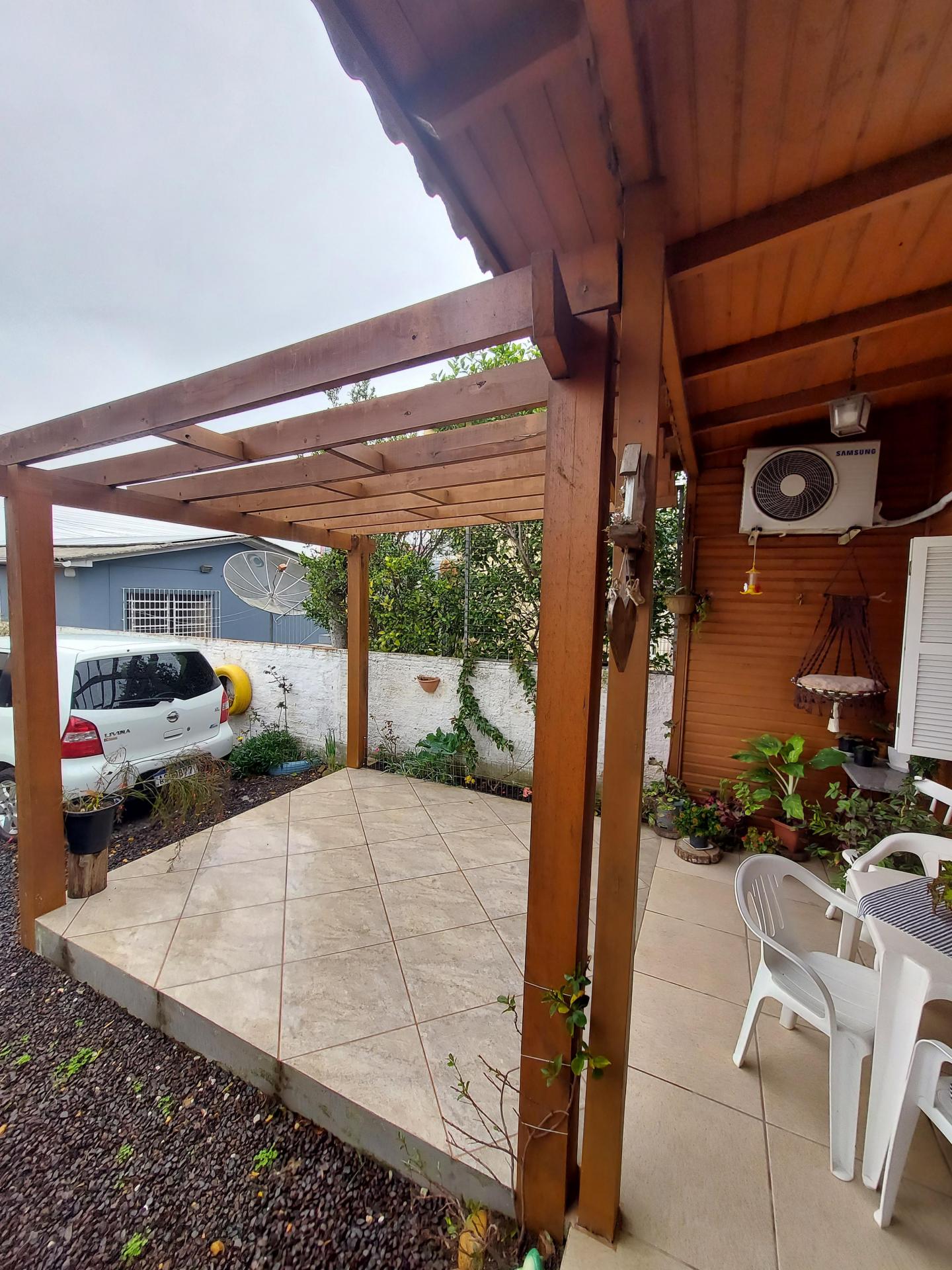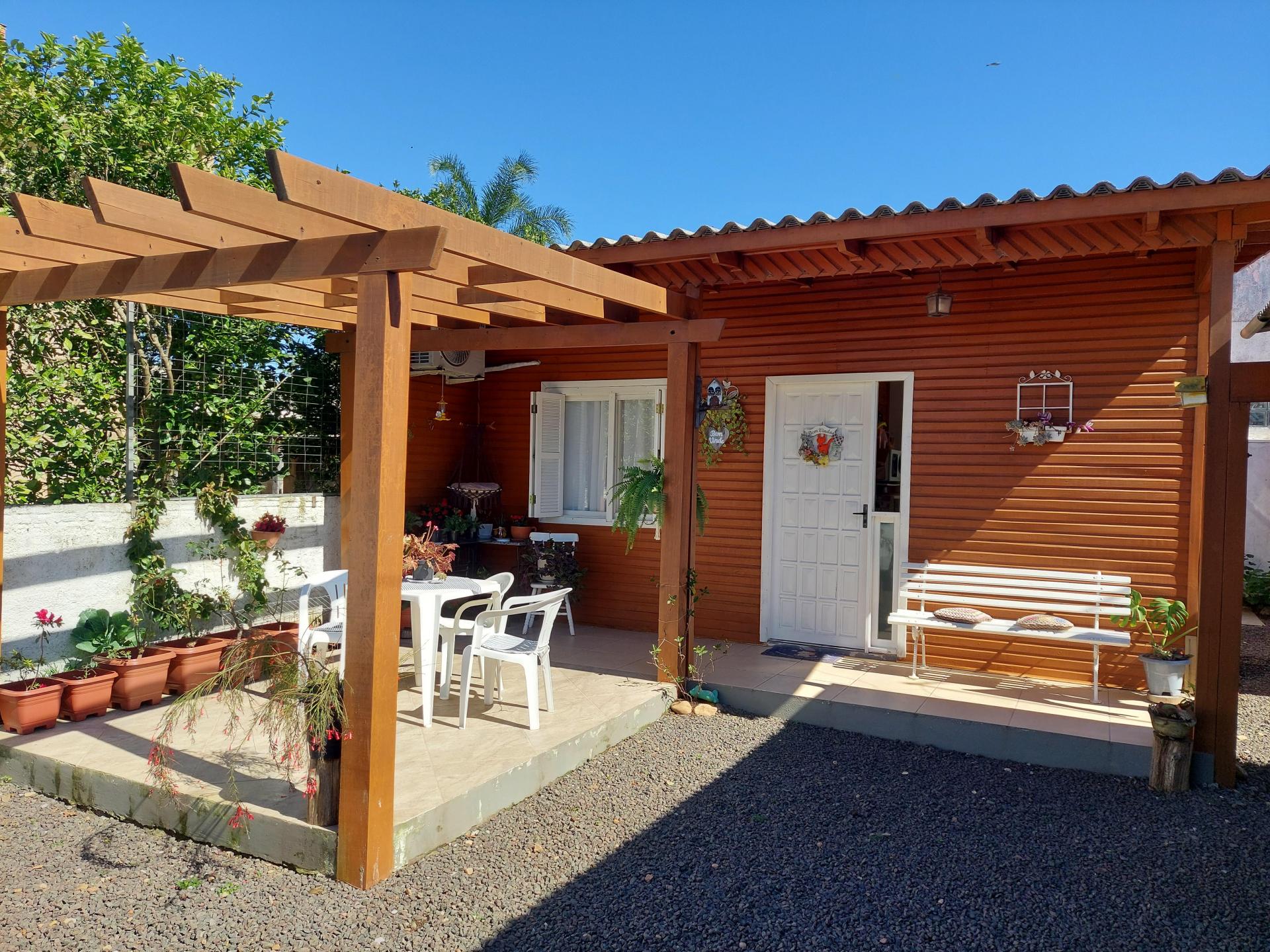 Chalé com 01 dormitório, cozinha, área de serviço, banheiro, varanda e pergolado